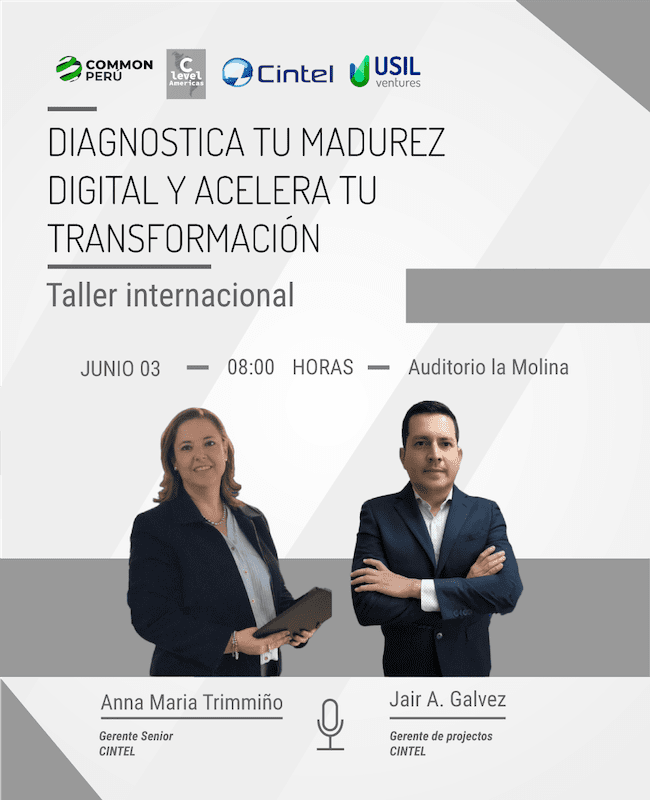 Taller ejecutivo con expertos de CINTEL enfocado en CEOs, CIOs y Gerentes. La sesión guió el diagnóstico de la madurez digital de la empresa, identificando brechas clave.